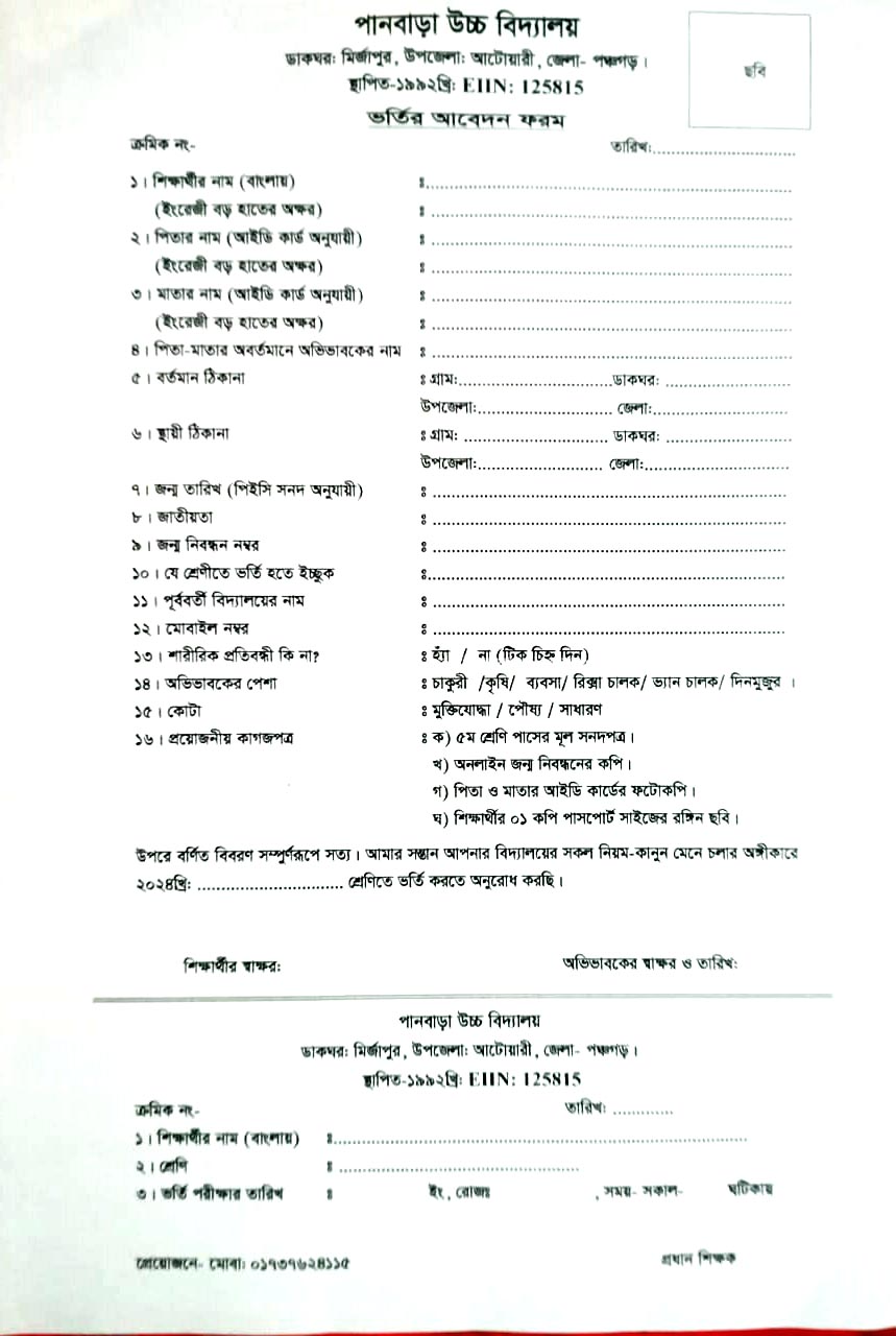 1 ভর্তি ফরম 01-01-2025